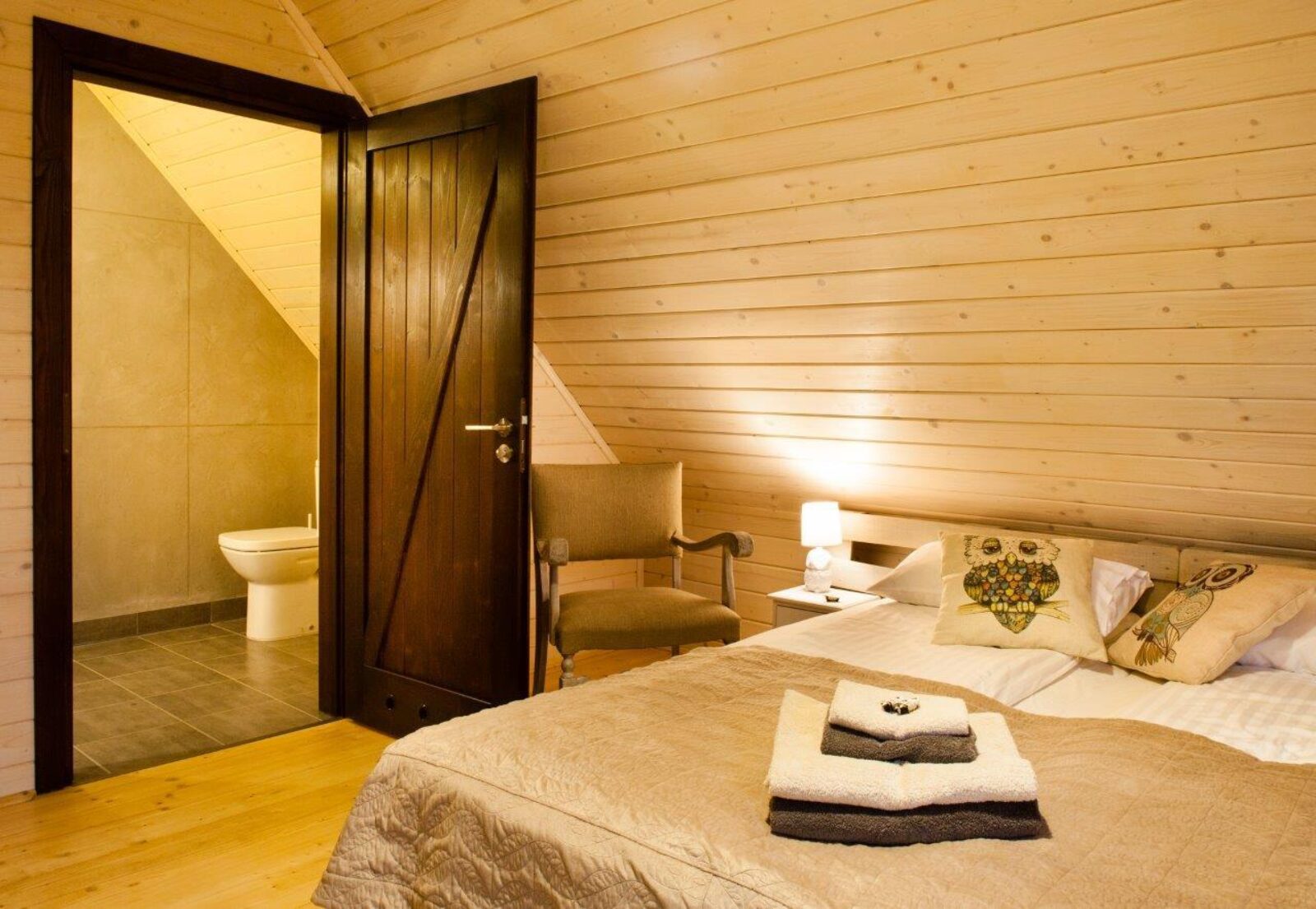 „Sówki” to możliwość zakwaterowania maksymalnie 2 osób – podwójne lub pojedyncze łóżka, bez możliwości wstawienia dostawki lub zakwaterowania dziecka w łóżku z rodzicami.